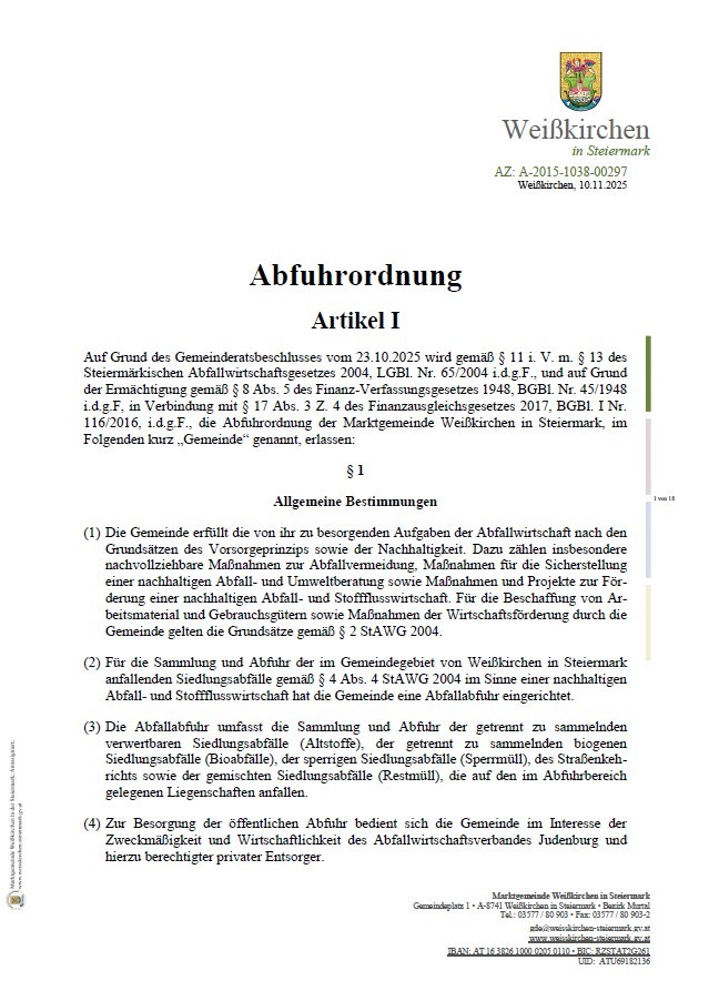 Nachstehend finden Sie die aktuellen Verordnungen der Marktgemeinde Weißkirchen in Steiermark zur Information und zum Herunterladen.