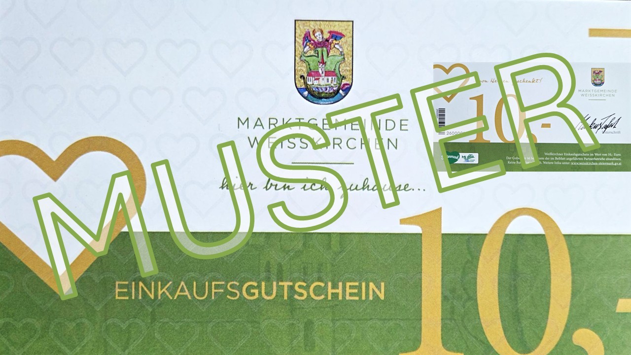 Die Weißkirchner Einkaufsgutscheine im Wert von 10,00 € erhalten Sie im Bürgerservice am Marktgemeindeamt Weißkirchen