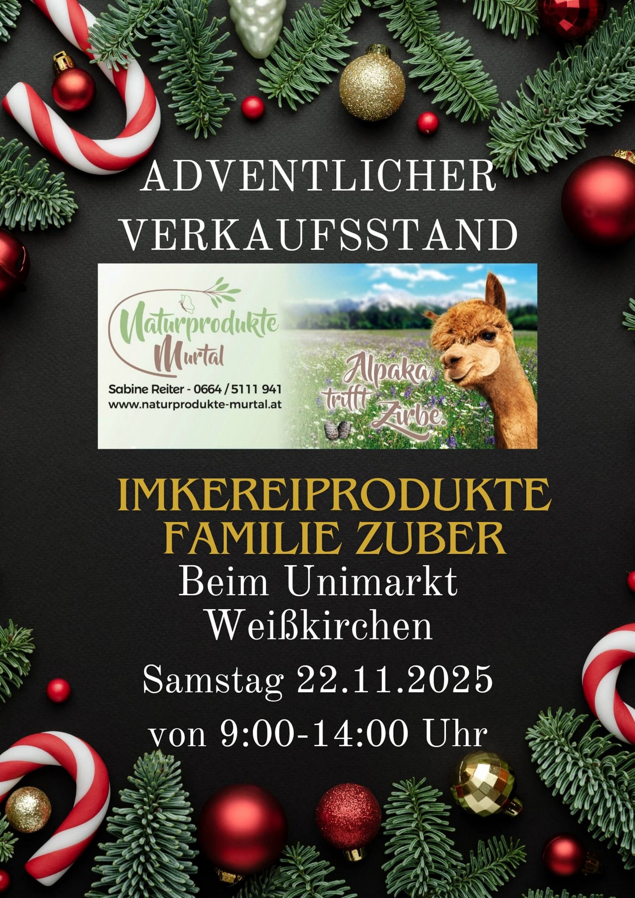 Adventlicher Verkaufsstand - Naturprodukte Murtal und Imkereiprodukte Familie Zuber