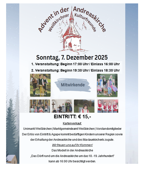 Kartenverkauf: Unimarkt Weißkirchen, Marktgemeinde Weißkirchen und bei allen Vorstandsmitgliedern