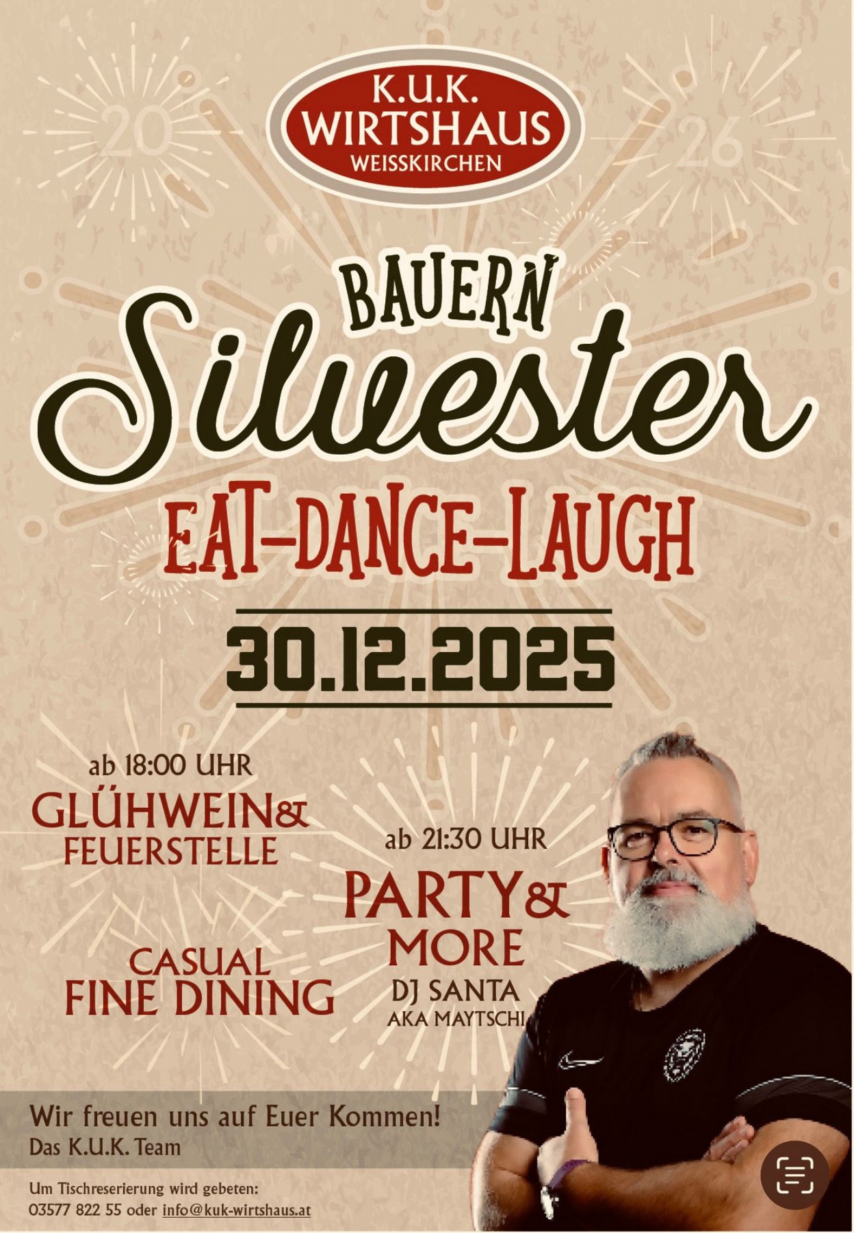 BAUERN Silvester EAT-DANCE-LAUGH - K.U.K. WIRTSHAUS Weißkirchen
