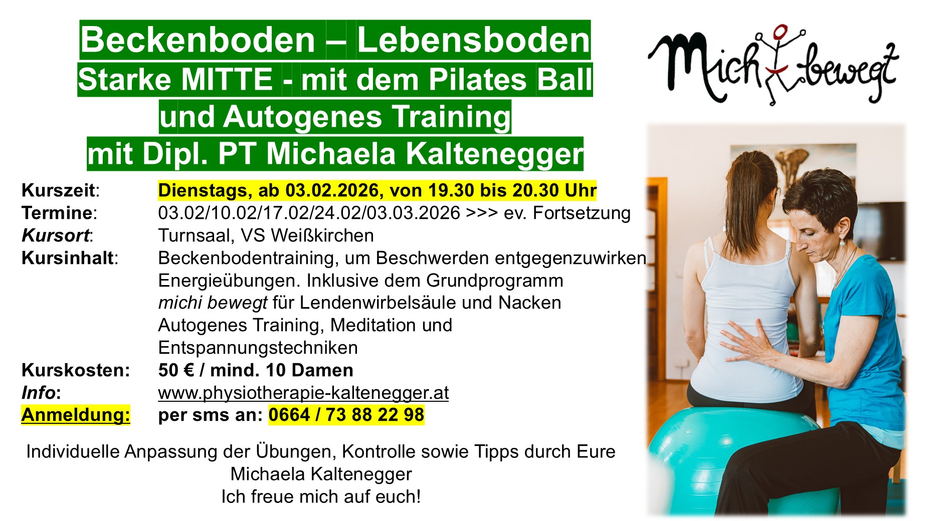 MICHI BEWEGT: Beckenboden – Lebensboden Starke MITTE - mit dem Pilates Ball und Autogenes Training