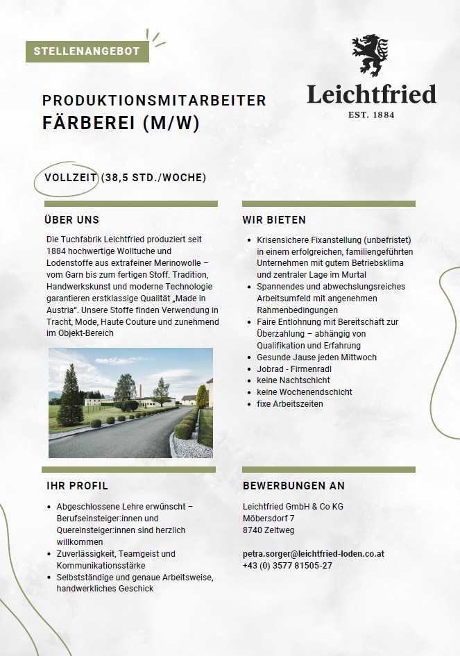 Weitere Details siehe AusschreibungSTELLENANGEBOT Leichtfried