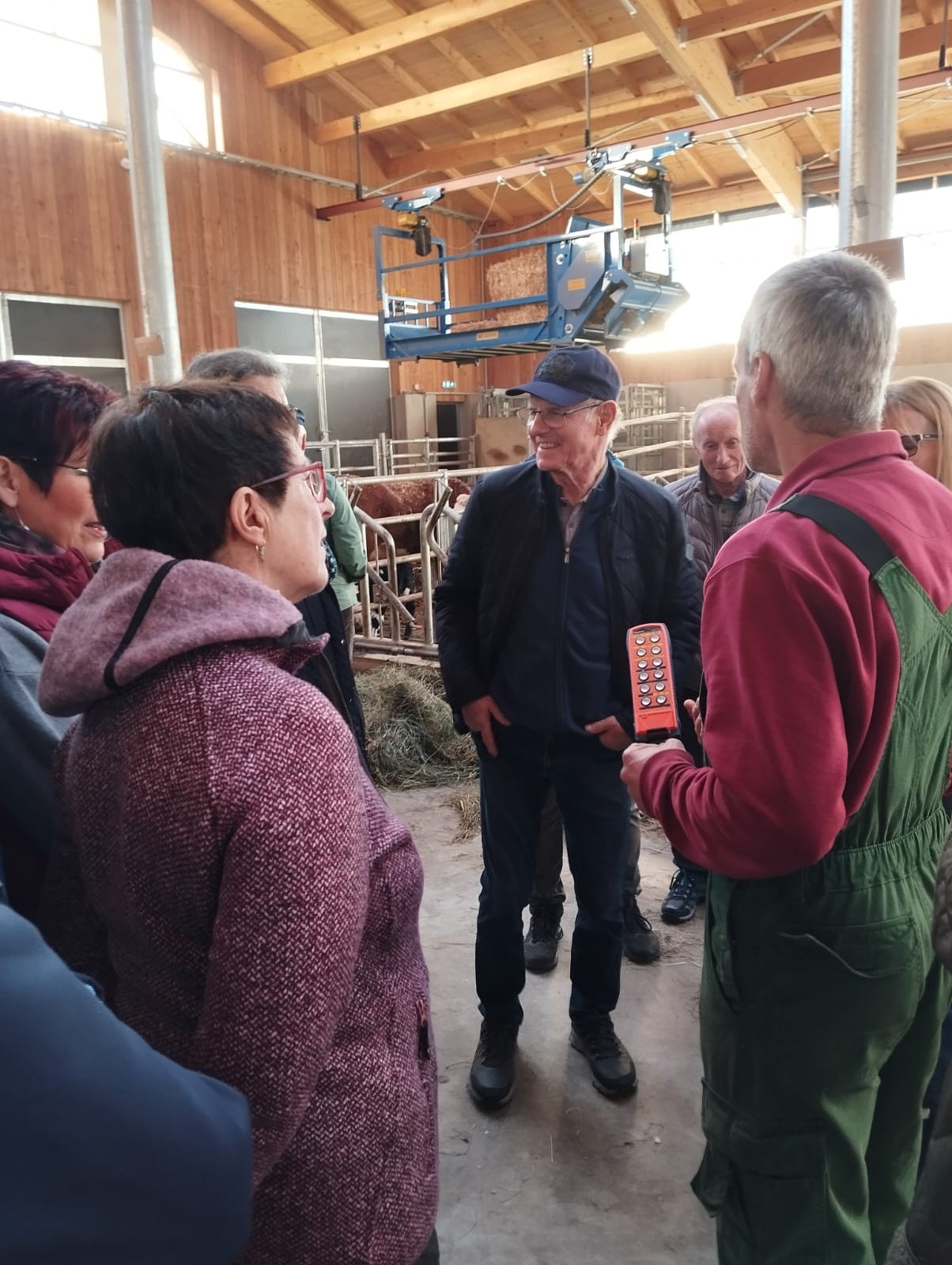 - Im Mittelpunkt stand die Besichtigung des modernen Rinderstalls. Johann Großhammer führte die Gruppe durch die Anlage und erklärte anschaulich die Abläufe im Betrieb – von der Aufzucht der Tiere über die Schlachtung bis hin zur Verwertung in den Gasthäusern des Mateschitz-Projektes.