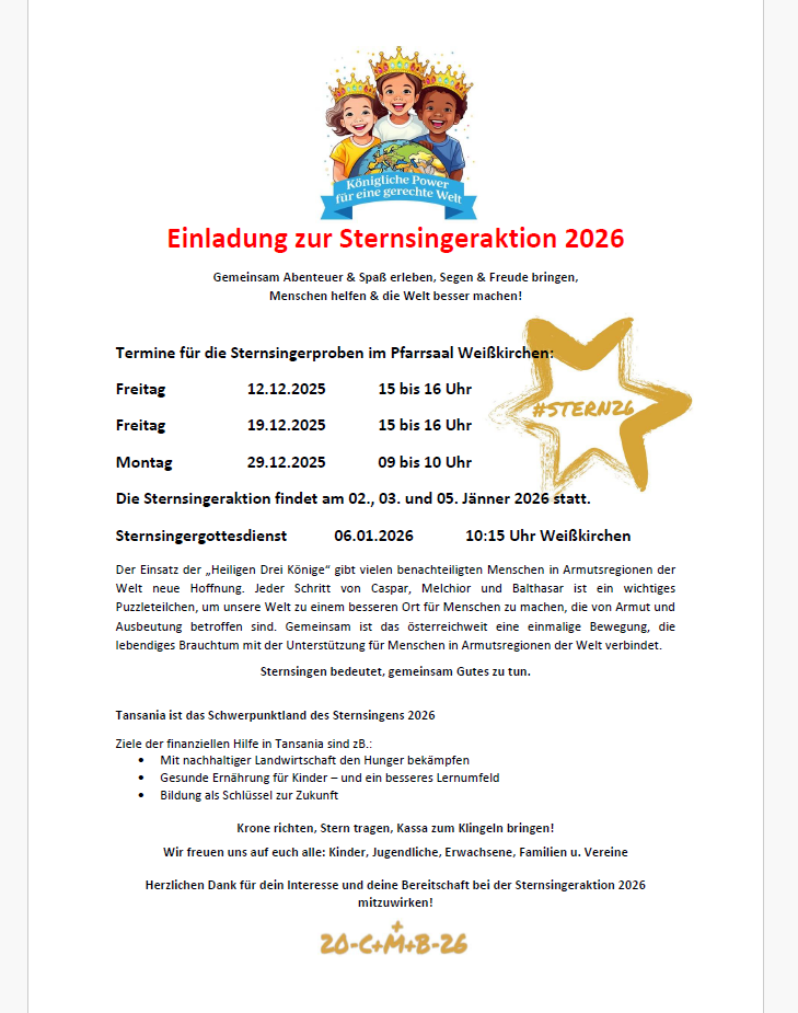 Sie befinden sich hier 〉 Einladung zur Sternsingeraktion 2026