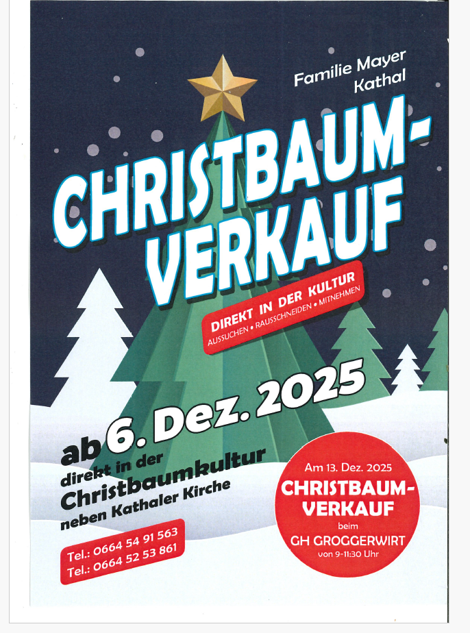 Ab 06.12.2025 - Christbaumverkauf direkt in der Christbaumkultur neben der Kathaler Kirche - aussuchen - rausschneiden - mitnehmen!