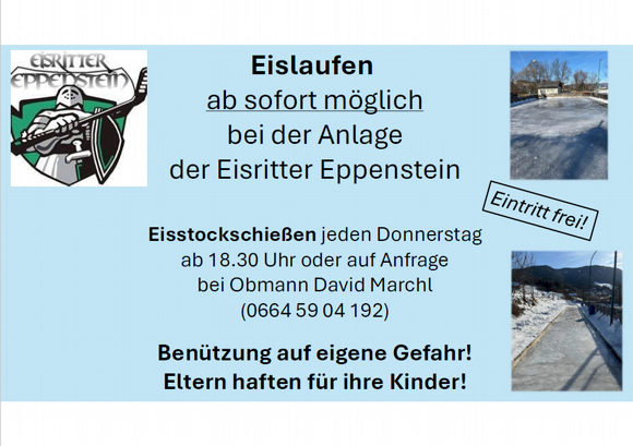 Eislaufen ab sofort möglich bei der Anlage der Eisritter Eppenstein