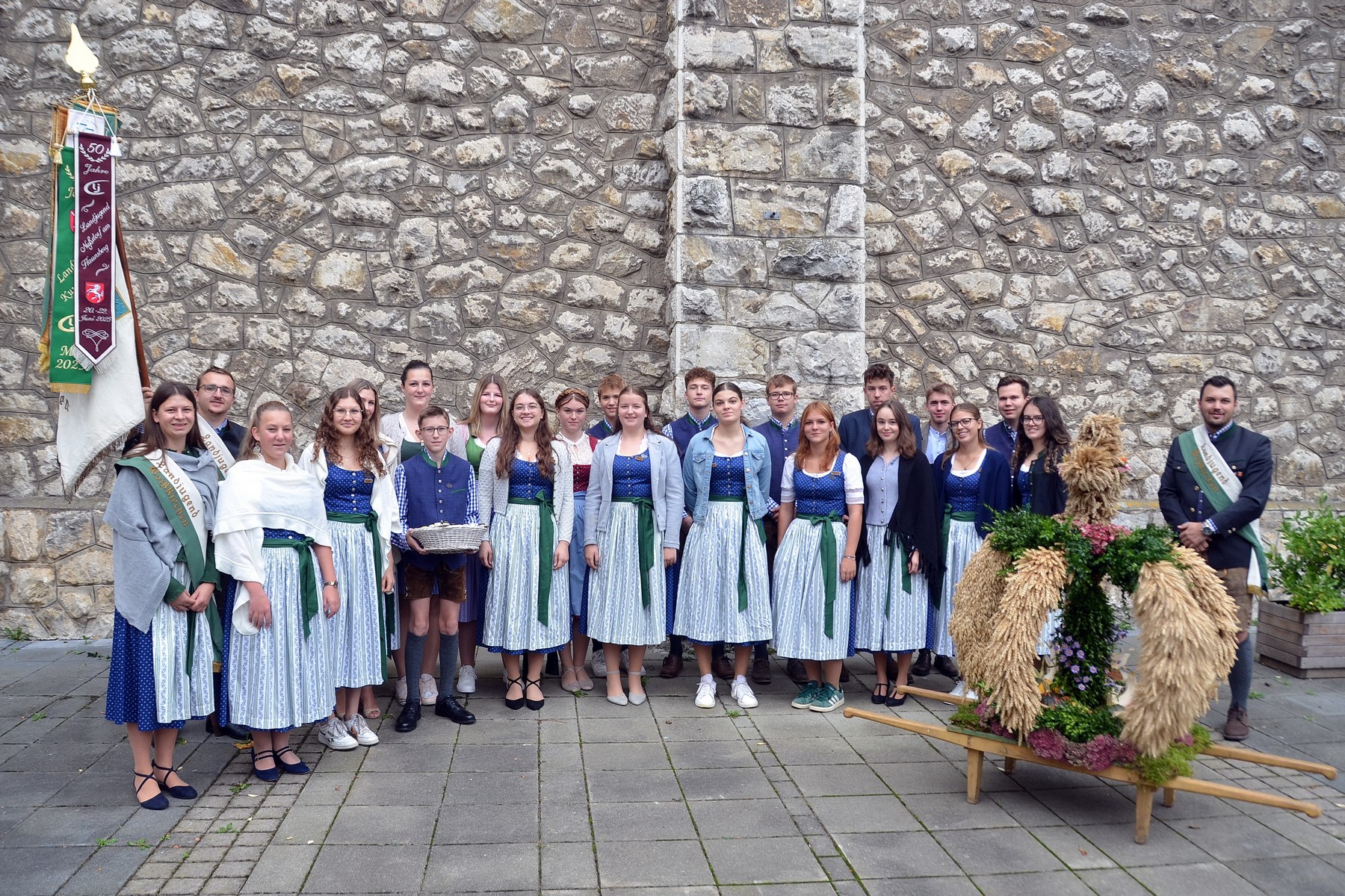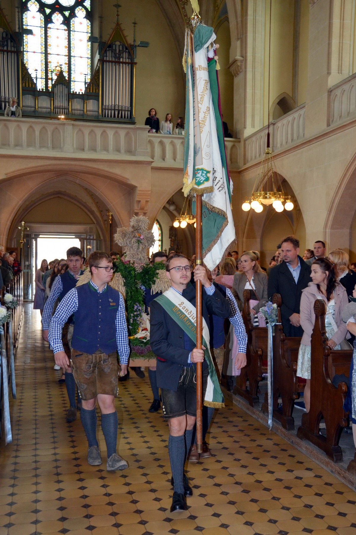 - Mitglieder der Landjugend trugen die Erntekrone in die Pfarrkirche, wo sie Pfarrer Rudi Rappel im Laufe der Heiligen Messe segnete.