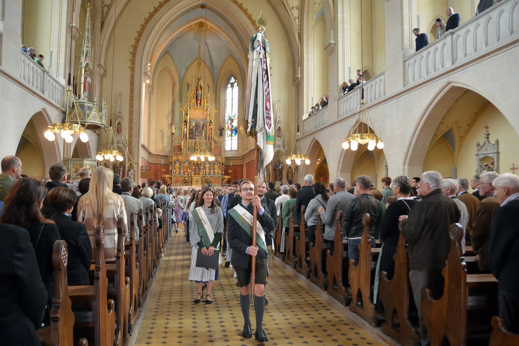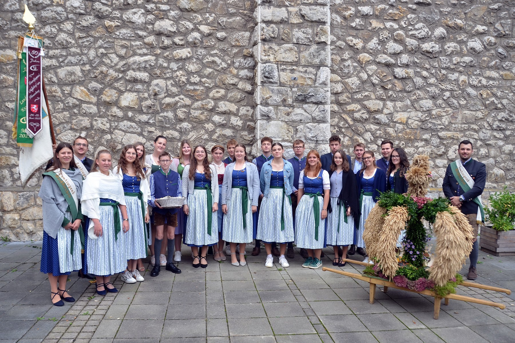 - Mitglieder der Landjugend trugen die Erntekrone in die Pfarrkirche, wo sie Pfarrer Rudi Rappel im Laufe der Heiligen Messe segnete.
