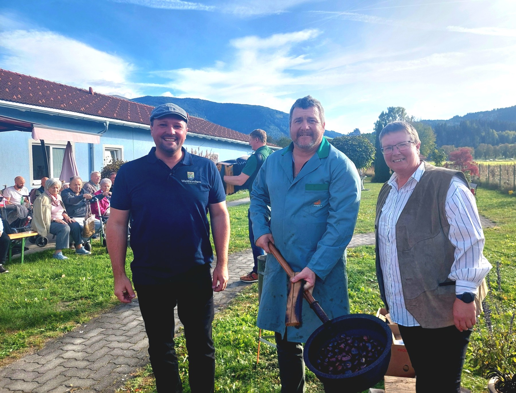- Für die köstlichen Maroni sorgte Vizebürgermeister Mario Leitner und Bürgermeister Markus Tafeit begrüßte und umsorgte gemeinsam mit Heimleiterin Alexandra Preiß die Gäste herzlich.