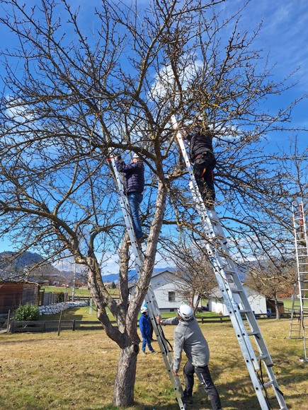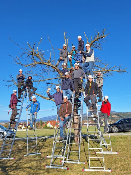 - 16 TeilnehmerInnen hatten am Betrieb der Fam. Zechner vulgo Schober die Gelegenheit, den Altbaumschnitt fachgerecht zu erlernen.