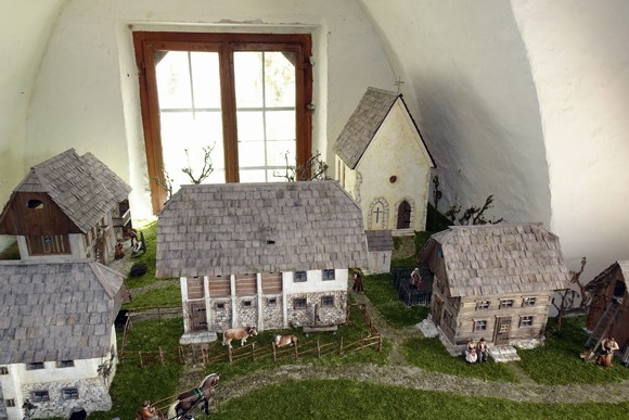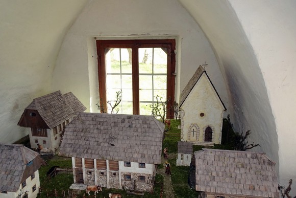 - Wieder herunten in Baumkirchen stellte Franz Waldauer sein Modell, wie das Dorf vor rund 150 Jahren ausgesehen hatte und nun im Vorraum der Andreaskirche steht, vor.