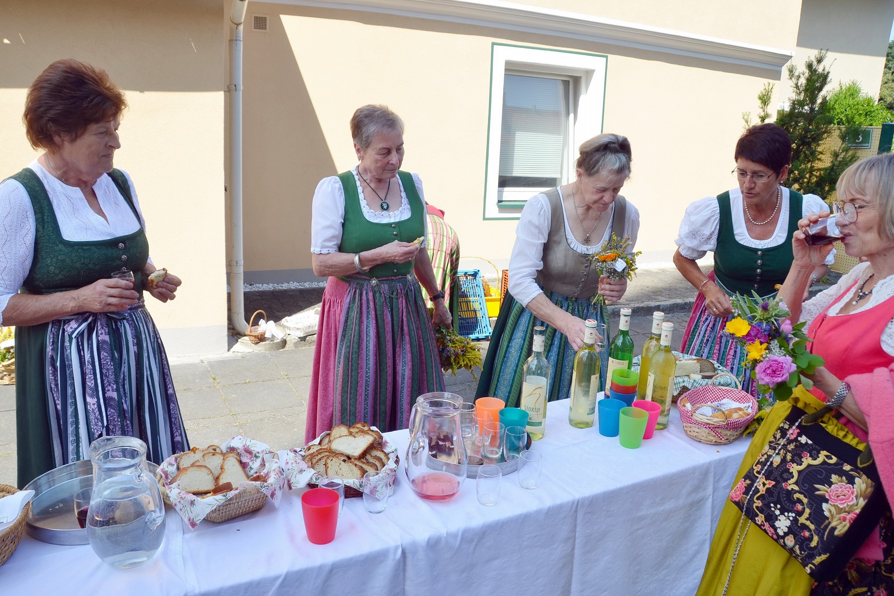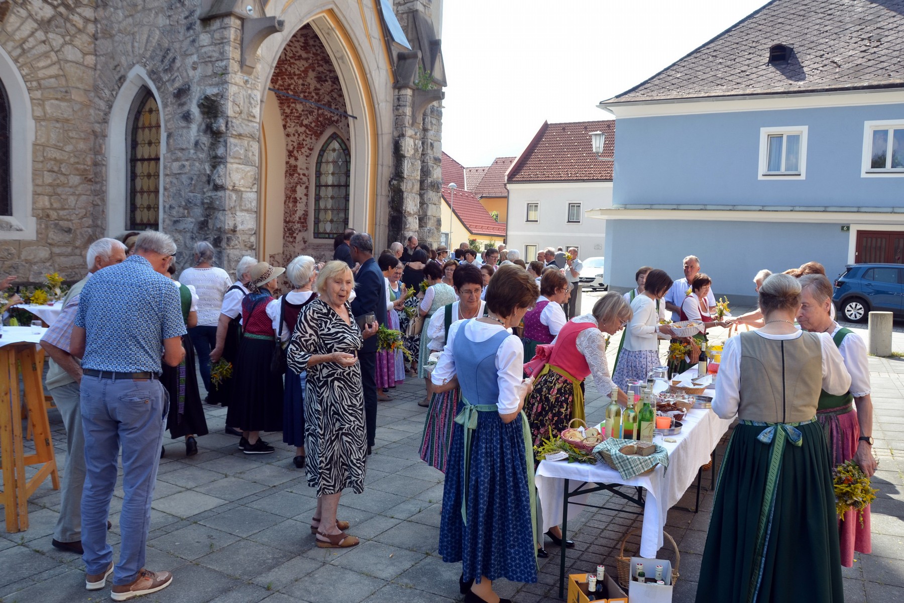 - Bei der Agape am Kirchplatz verteilten die Mitglieder der Frauenbewegung unter Obfrau Christine Grangl (3.v.r.) die Sträußerl und das Kräutersalz.