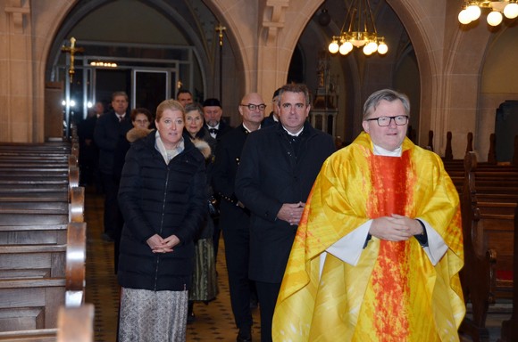 Eingeleitet wurde die Barbarafeier mit einem Gottesdienst in der Pfarrkirche, gelesen von Pfarrer Rudolf Rappel. Für die musikalische Umrahmung sorgte die Vokalgruppe „Vox Nui“ in der Kirche, sowie beim Festakt und danach die Band „Hakuna Matata“.