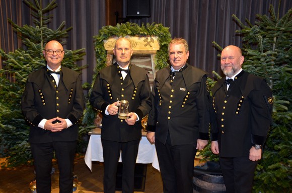 Ein neuer Mitarbeiter, Wolfgang Eberdorfer, absolvierte bei der Barbarafeier nach altem Bergmannsbrauch den traditionellen Ledersprung, er trat damit in den Bergmannsstand ein.