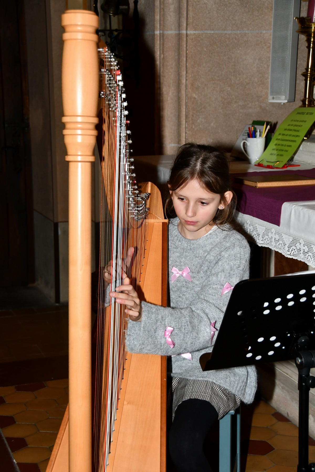 - Als musikalischer Kontrast trat noch die junge Instrumentalistin Miriam mit ihrer Harfe auf.