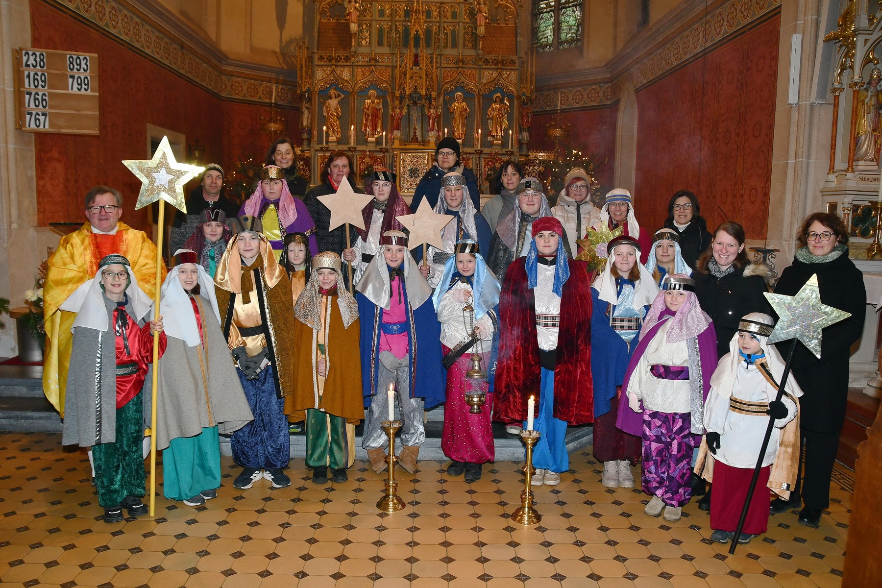 40 Kinder mit ihren Begleitern wie auch 20 Erwachsene in insgesamt 23 Gruppen waren wieder mit Begeisterung dabei und sammelten Spenden für weltweit rund 500 Hilfsprojekte. Mit Stolz konnte Karin Leitold vom Sternsinger-Team beim Sternsinger-Gottesdienst am 6. Jänner verkünden, dass rund 17.000 Euro zusammengekommen sind, was eine schöne Steigerung bedeutet und zu den Spitzenergebnissen im gesamten Bezirk zählt.