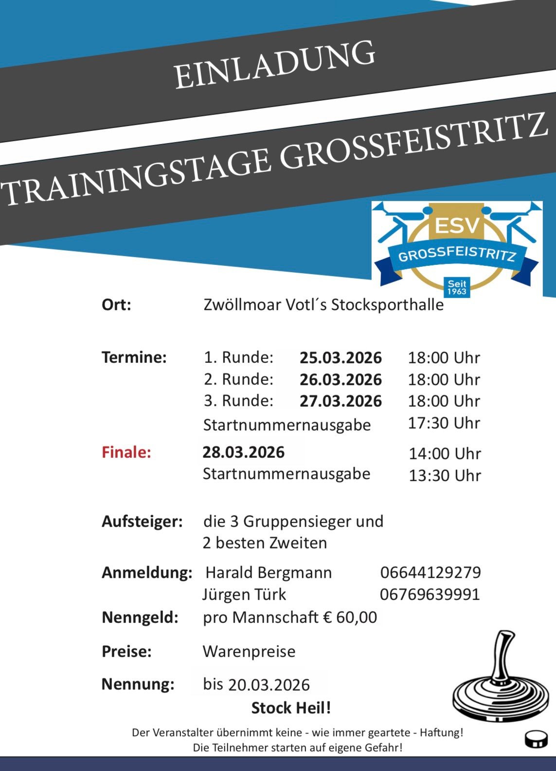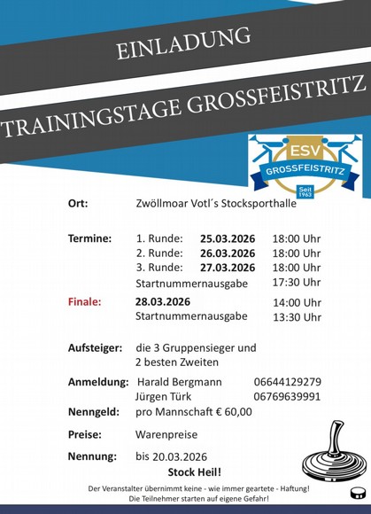 Sie befinden sich hier 〉 Einladung Trainingstage Großfeistritz - ESV Großfeistritz