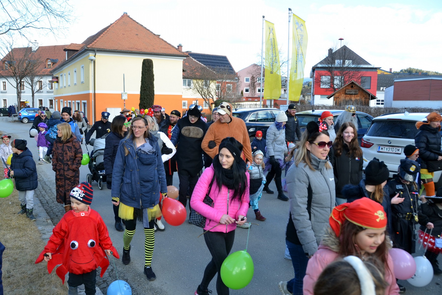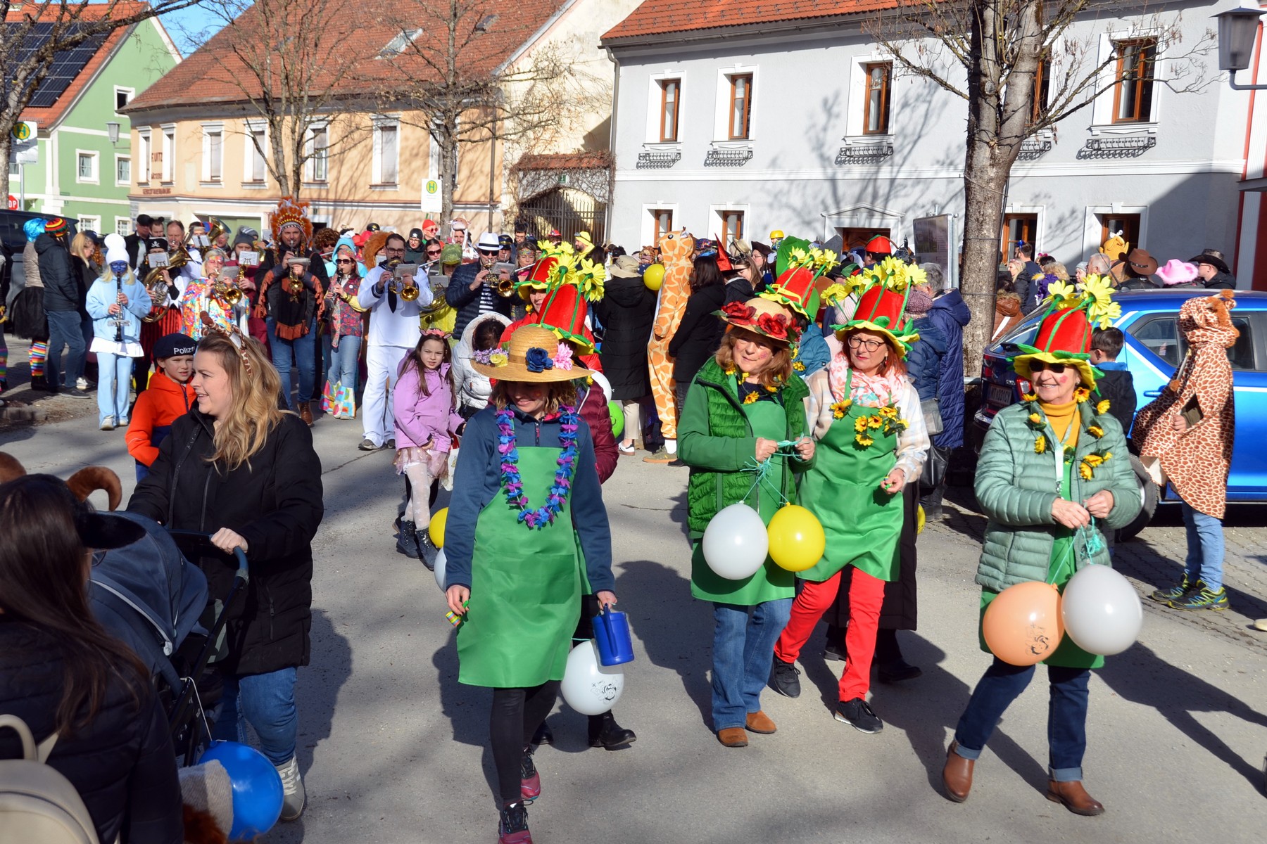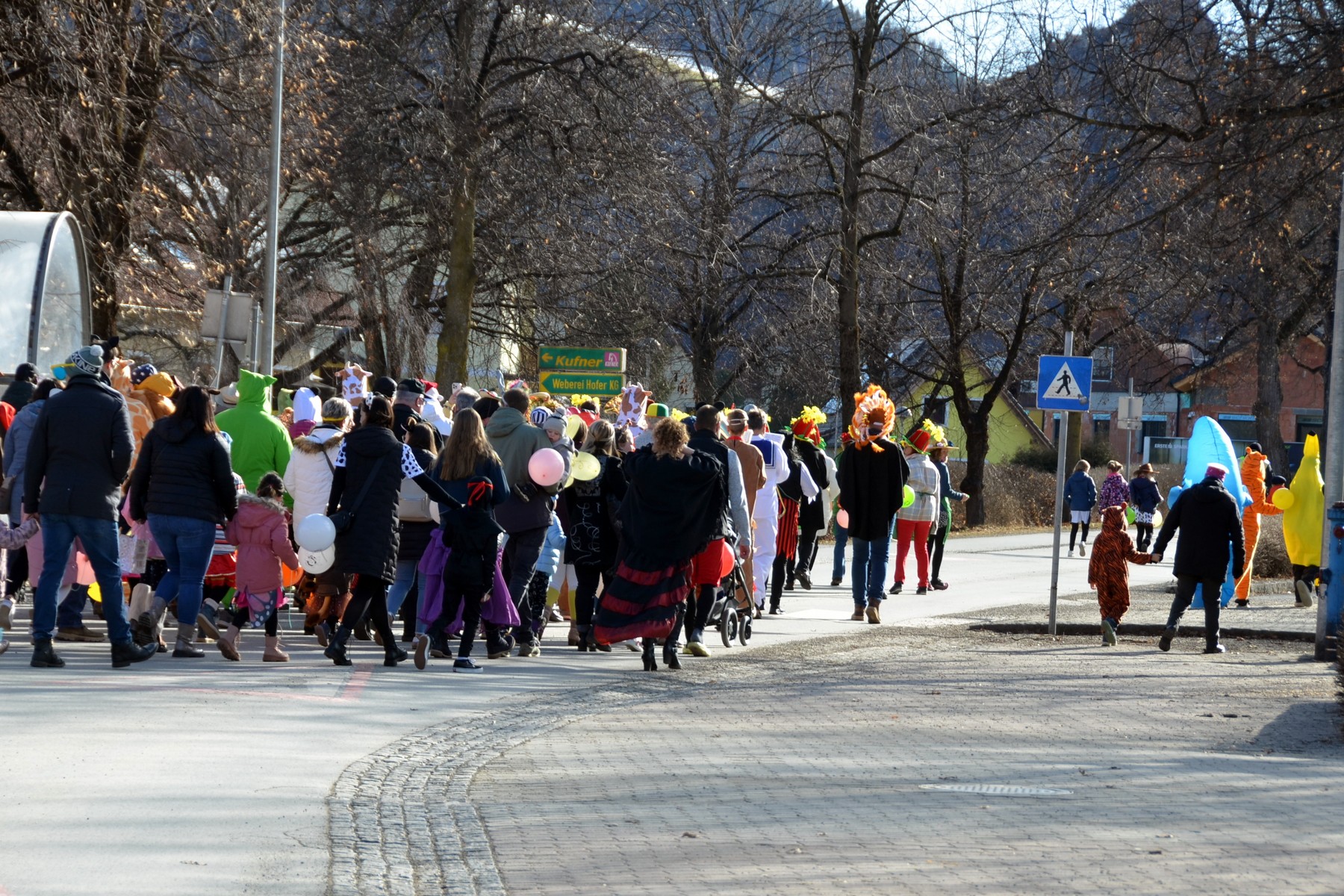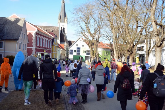 - Der Umzug, angeführt vom Musikverein Weißkirchen unter Obmann Engelbert Sattler, startete am Hauptplatz, führte zum Seniorenheim und endete dann im Panthersaal, wo es für jedes Kind ein Getränk und einen Krapfen nebst vielen Spielen und Tänzen gab.