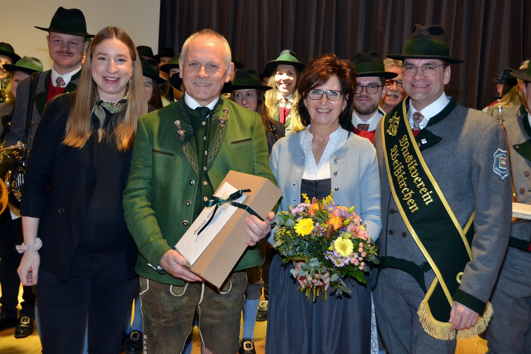 - Der Musikverein Weißkirchen an der Spitze ist fast vollzählig ausgerückt, um Helmut Grangl aus diesem Anlass zu gratulieren.