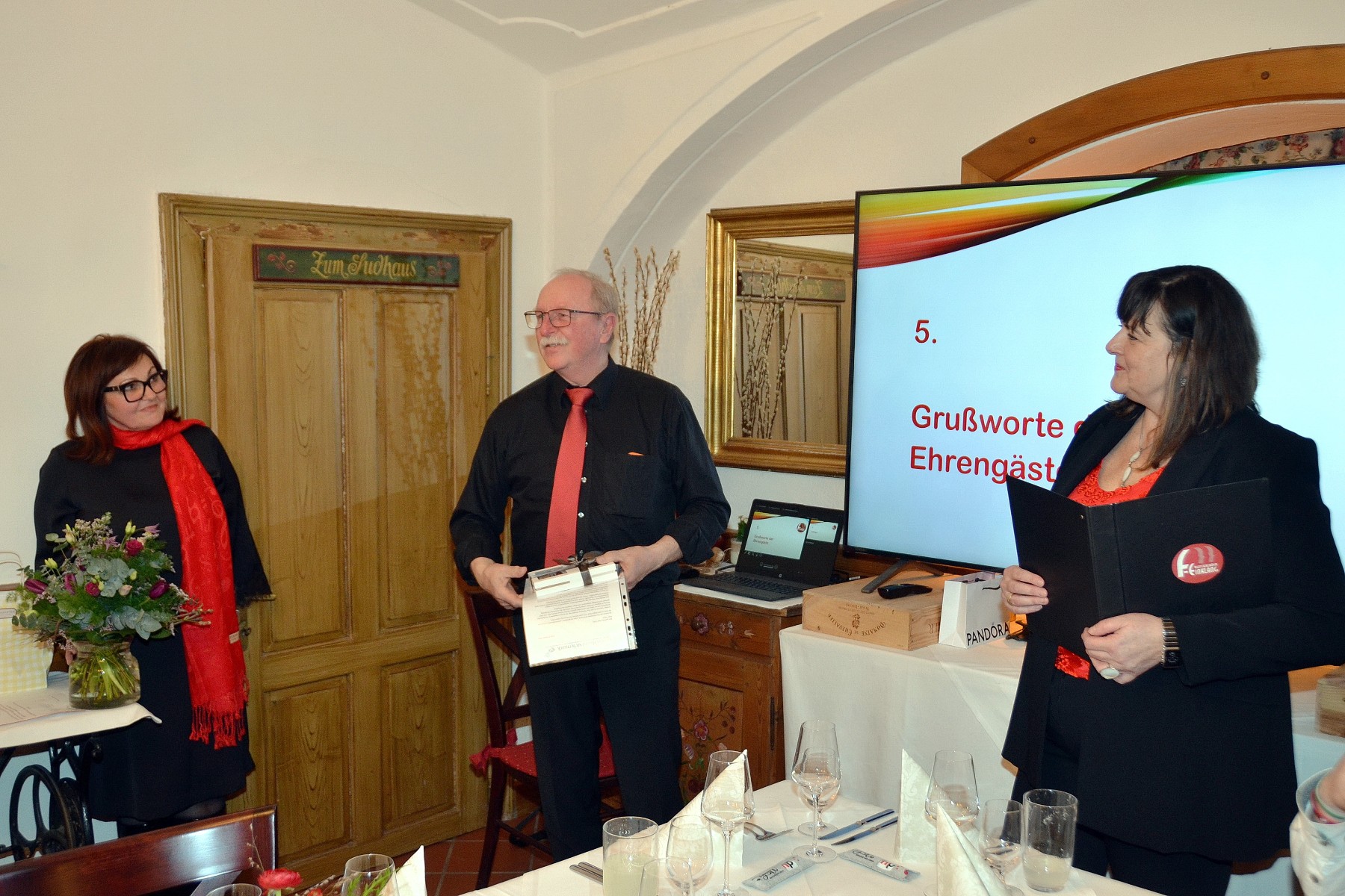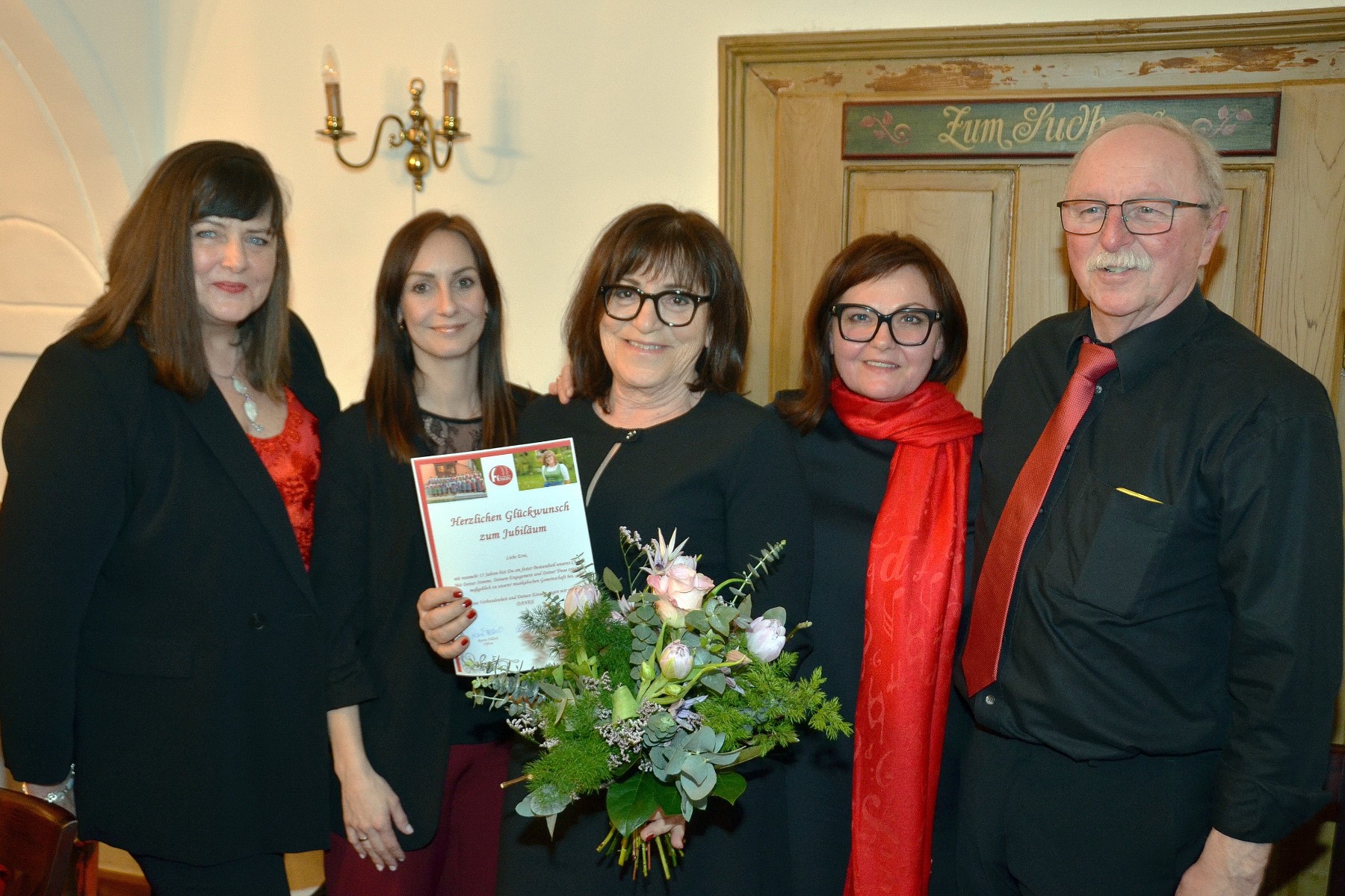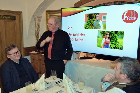 Geehrt wurden Erni Bucher für 15 Jahre und Heike Steiner für 10 Jahre. Ein Danke wurde an Gerti Pristauz (5 Jahre Obfrau und stv. Schriftführerin) und Brigitte Hofer (7 Jahre Obfrau und 23 Jahre Archivarin) ausgesprochen. Nach 46 Jahren aktiver Mitgliedschaft wird Gründungsmitglied Erna Plattner in die „2. Reihe“ zurücktreten. Für den ausgeschiedenen Chorleiter Hans Hofer wurde ein Danke-Mail vom Chorverband vorgelesen.