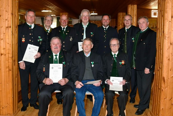 - Ein weiterer Hauptpunkt dieser Sitzung war die Ehrung langjähriger Mitglieder: Protektor Helmut Maurer und Reinhard Schweinberger für 25 Jahre, Roland Kocher, Gerhard Freigaßner, Helmut Schenk, Johann Hübler, Karl Hübler und Manfred Liebminger für 40 Jahre.