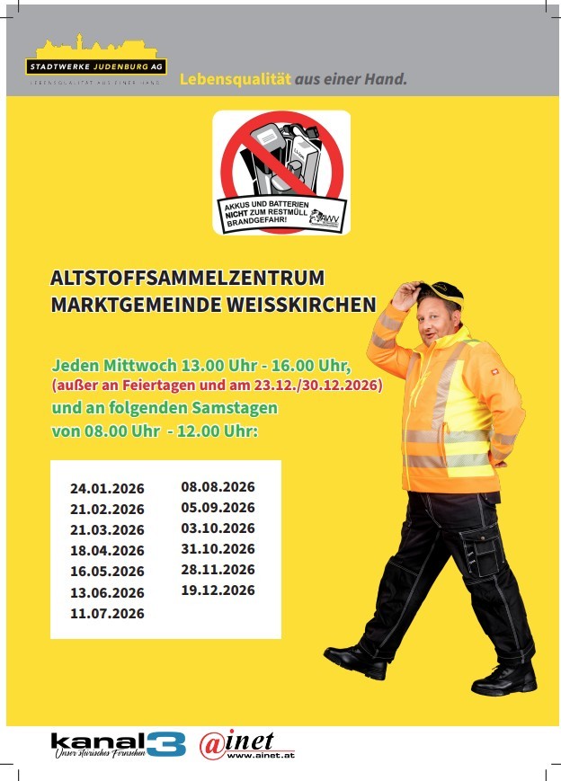 Unser Infoservice liefert Ihnen, in periodischen Abständen, Informationen rund um die Marktgemeinde Weißkirchen in der Steiermark.